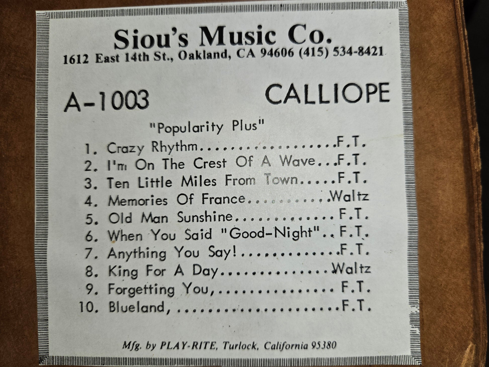 See picture for tunes on this roll.