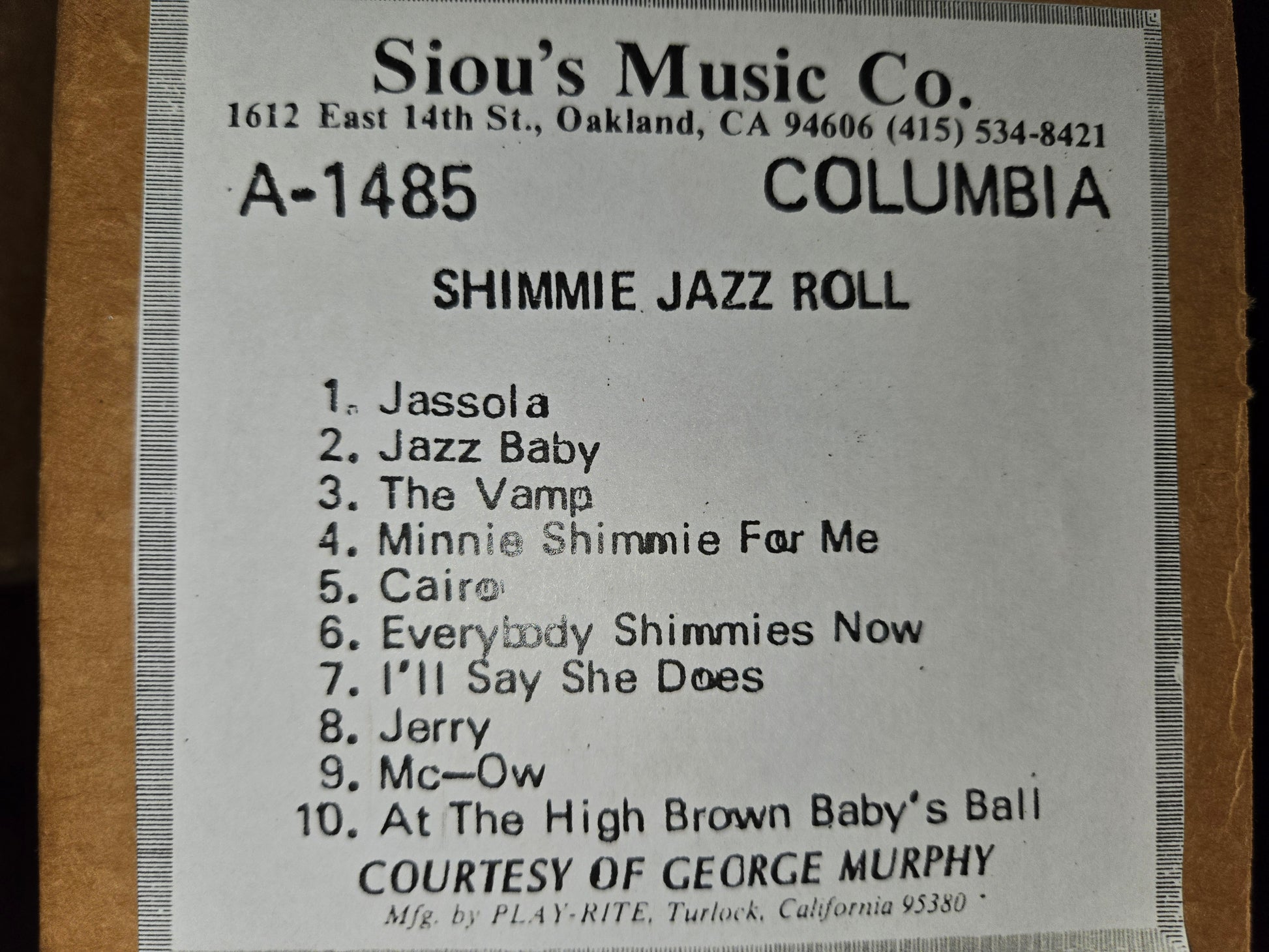 See picture for tunes on this roll.