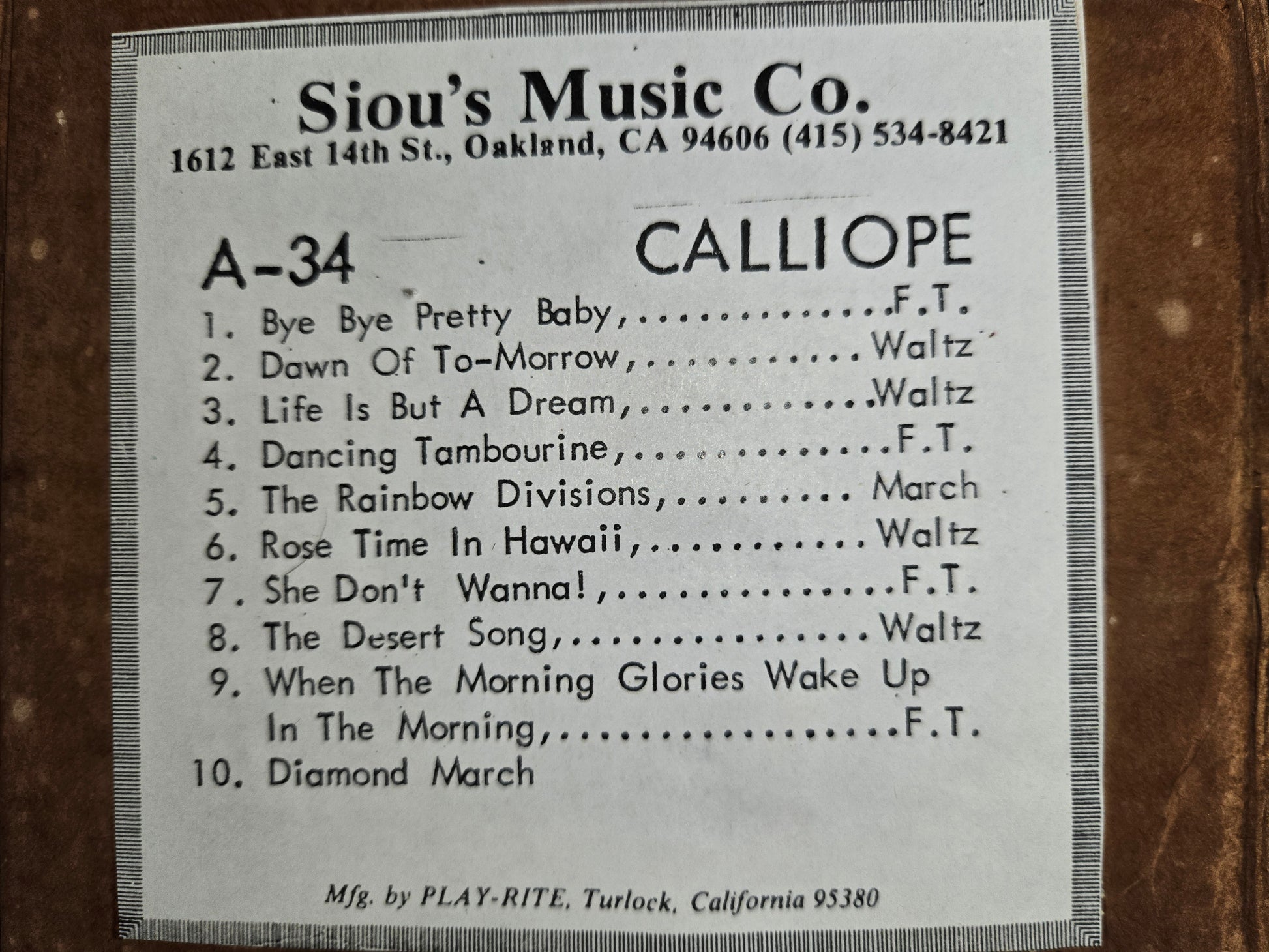 See picture for tunes on this roll.