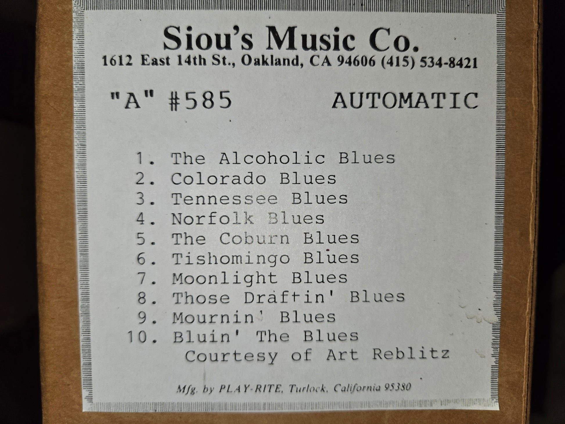 See picture for tunes on this roll.