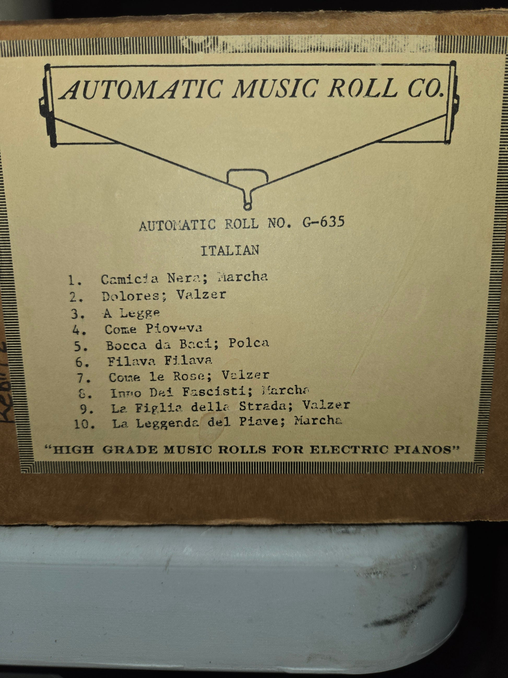 See picture for tunes on this roll.