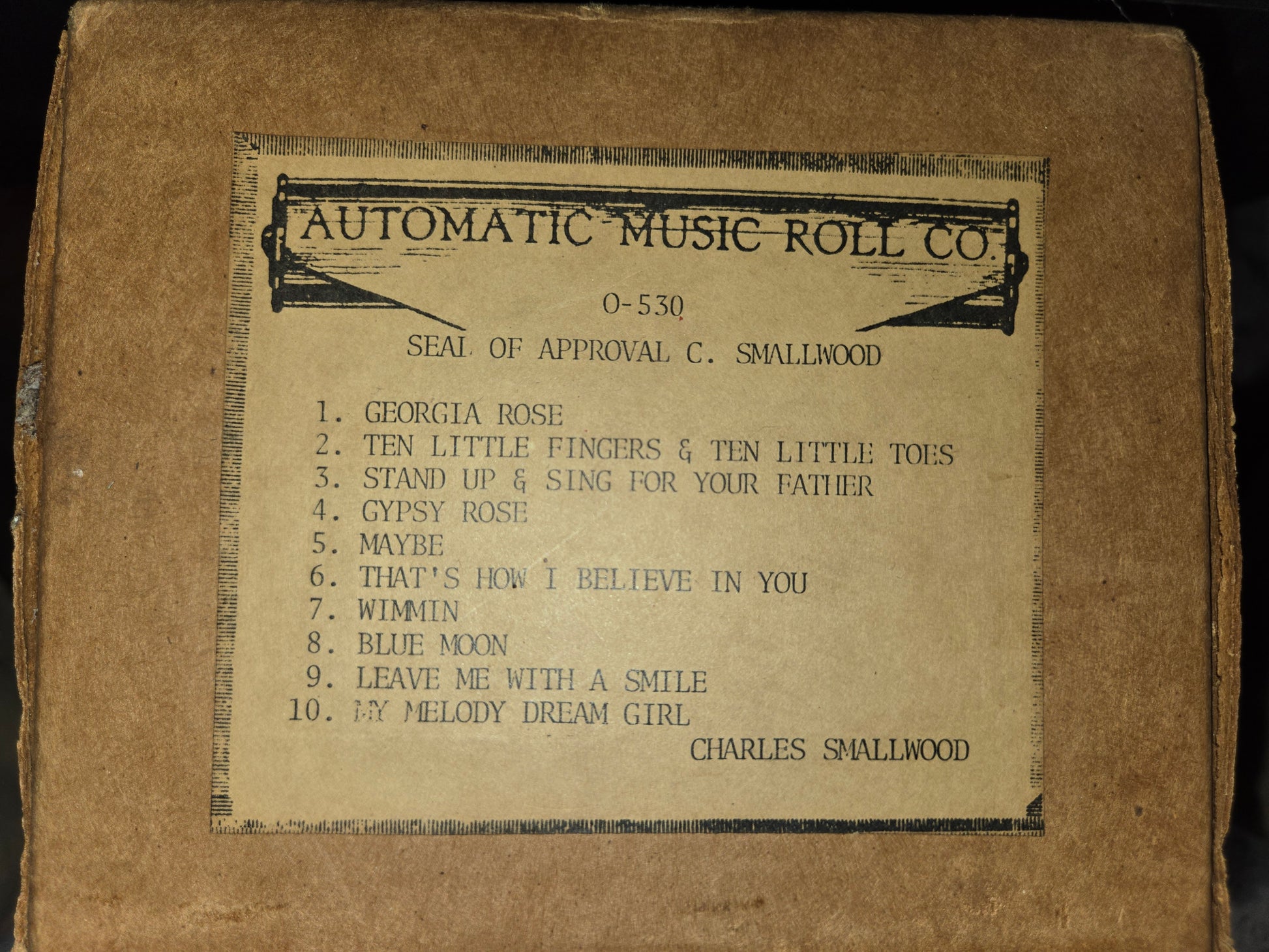 O-Roll O-530 Nickelodeon Orchestrion Roll Seal of Approval