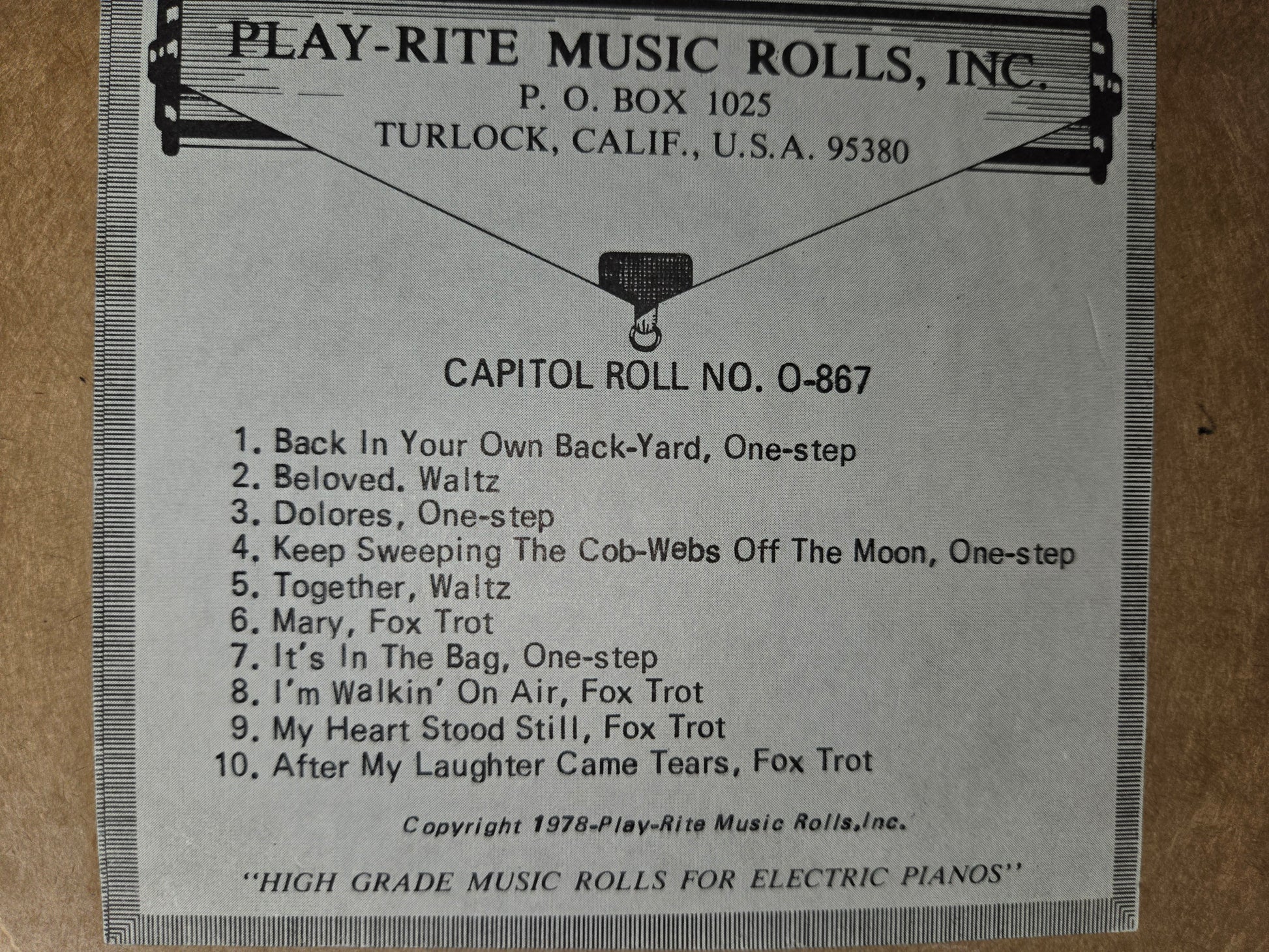 O-Roll O-867 Recut Nickelodeon Orchestrion Roll Fox Trot One-Step